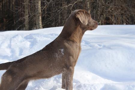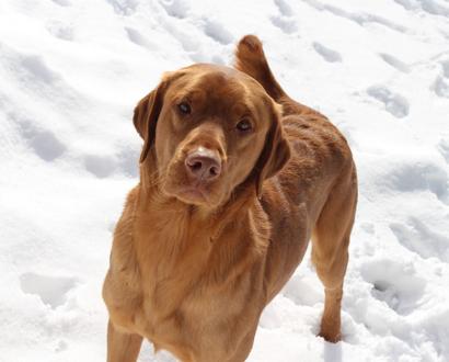 Koda Bear Chocolate male Dd carries the long coat gene. Clear on Embark by parentage. He comes from Tall Pine Labradors. His dad is Baron.